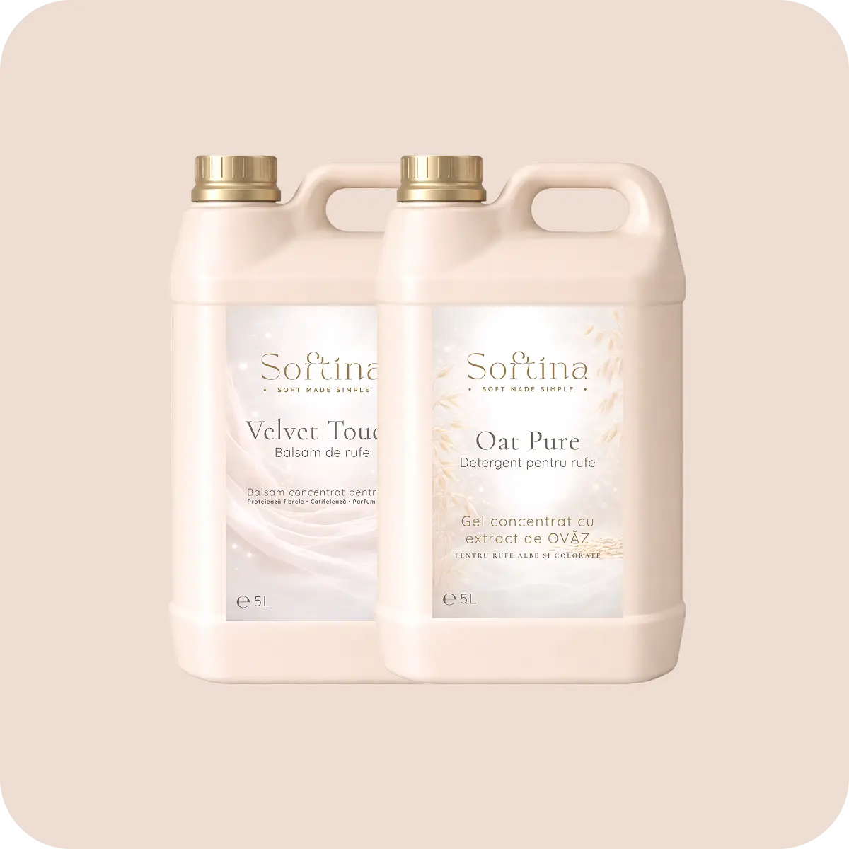 Acest pachet combină detergentul și balsamul Softina cu același parfum, pentru o experiență completă la fiecare spălare. Curățare eficientă și un parfum floral delicat, gândite să funcționeze împreună, spălare după spălare.